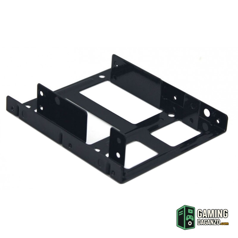 Caracteristicas | – Maximiza el espacio interior de la caja del ordenador para un uso eficiente. – Compatible con cualquier caja de ordenador con una bahía de 3,5 estándar disponible. – Compatible con discos duros HDD y SSD de 2,5″ – Incluye 12 tornillos para montar el disco duro y el soporte dentro de la caja del PC – Estructura metálica con recubrimiento negro mate. – Dimensiones: 102 x 115 x 23 mm |