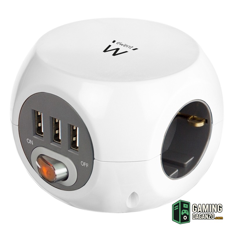 La toma de corriente cúbica EW3939 dispone de 3 salidas de alimentación para conectar 3 dispositivos. Los tres puertos USB son adecuados para cargar teléfonos inteligentes y tablets con una carga máxima de 2,4A a la vez.