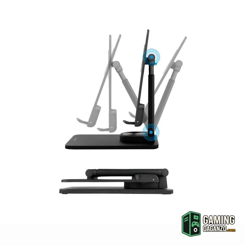 El soporte adopta un diseño ergonómico, giratorio 360°, se puede ajustar en altura y ángulo libremente. Perfecto para ver películas, jugar videojuegos o hacer vídeo conferencias.